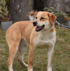 Młody piesek średniej wielkości. Ma w sobie coś z goldena, może labradora, ale będzie jednak mniejszy. Alek ma ok. 8 miesięcy i jest bardzo przyjaznym psiakiem. Polecamy 🙂