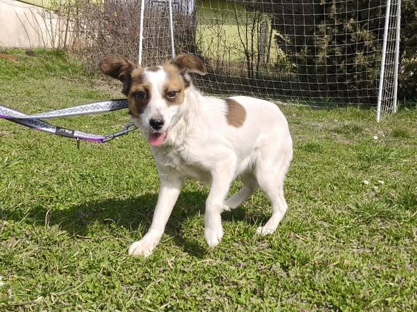 Grzanka trafiła do nas z gminy Sędziszów Małopolski. To około roczna sunia o wielkim sercu – waży 7 kg i ma około 36 cm. Jest absolutnie łagodna, kochana i bardzo sympatyczna. Na początku bywa lekko spłoszona, ale szybko pokazuje, jak cudowną jest sunią.